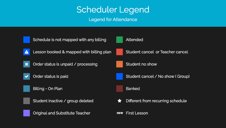 Curious as to what the different colors and symbols on scheduled lessons mean? Allow us to explain.