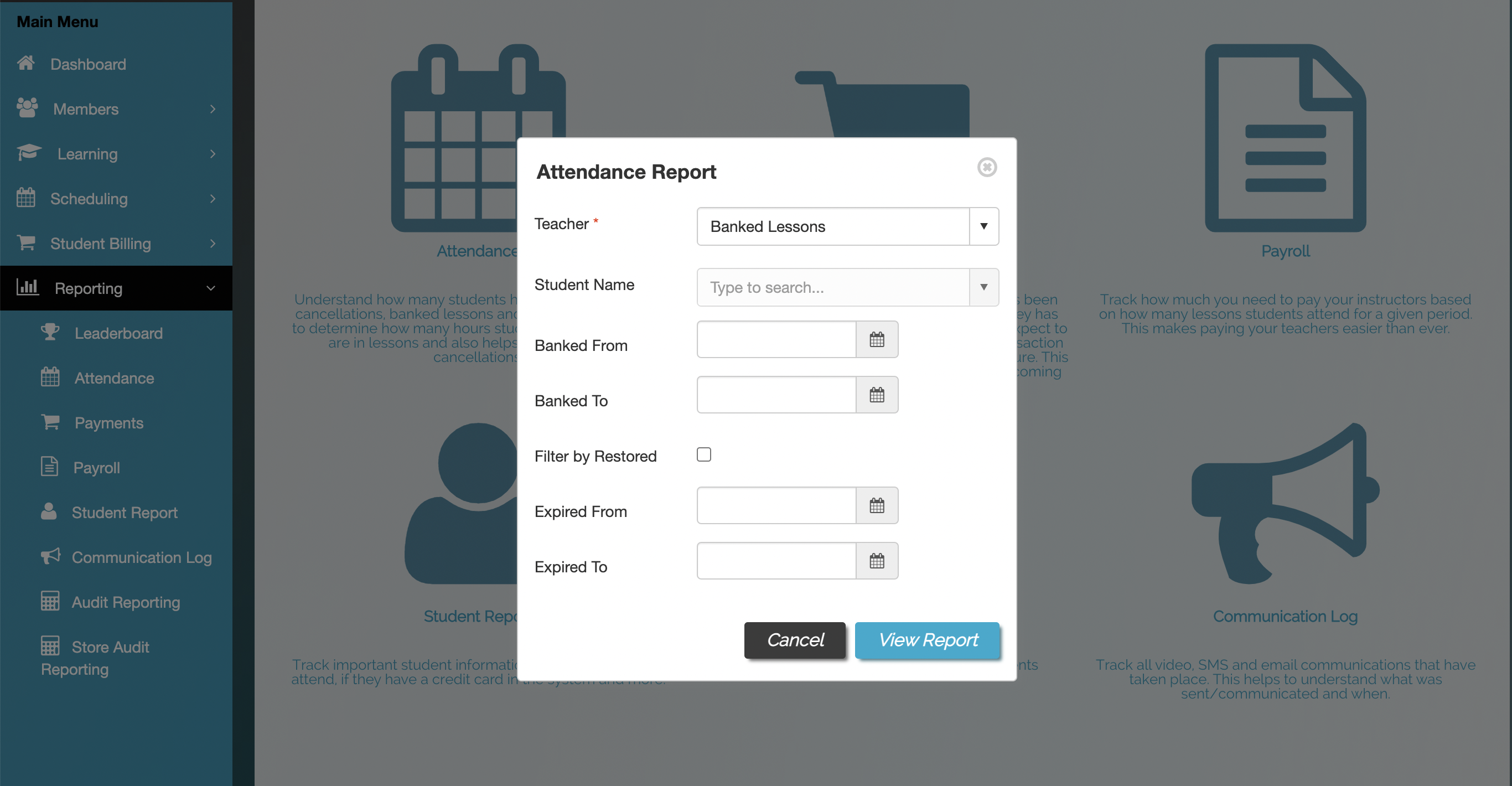 Easily track banked, expired, and restored lessons using the banked lesson report via the attendance report.