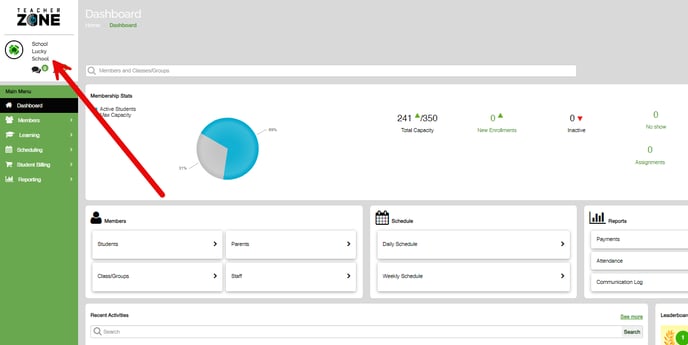 - Beneath the school admin login, click on your school's name in the top left corner: