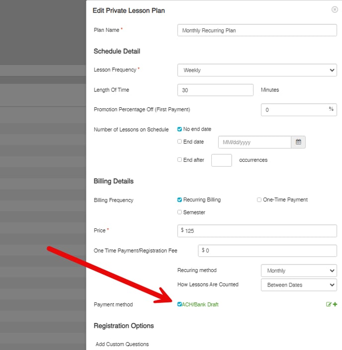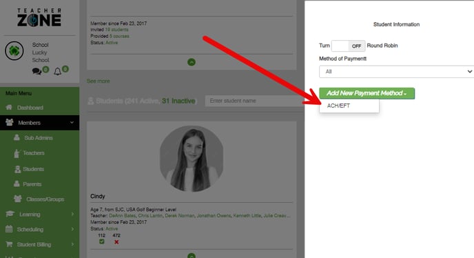- Choose the payment method you prefer to enable for use within your school, whether ACH or CC: