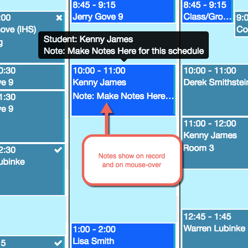 - There are two ways to make notes. You can either make notes on the student profile by clicking on "view profile," or you can take notes using the individual schedule.
