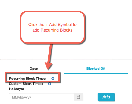 Step 2: Select the "+" symbol to choose recurring blocked off times: